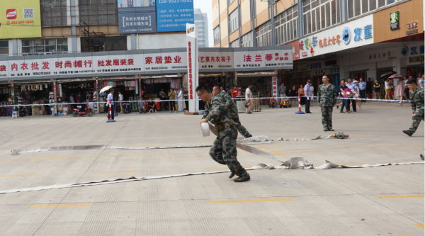 2017年6月28日,宣武集團(tuán)在商貿(mào)城開(kāi)展消防綜合演練活動(dòng)?;顒?dòng)中,集團(tuán)經(jīng)濟(jì)護(hù)衛(wèi)隊(duì)、市場(chǎng)業(yè)戶、消防隊(duì)進(jìn)行了擒敵拳、班隊(duì)列、消防水帶連接、滅油盆火4個(gè)項(xiàng)目業(yè)務(wù)技能匯報(bào)表演,并與云龍消防大隊(duì)聯(lián)合進(jìn)行了一次滅火和應(yīng)急疏散演練。通過(guò)演練,進(jìn)一步提升了職工、業(yè)戶的消防安全意識(shí)和應(yīng)急處置能力。房管局系統(tǒng)、云龍區(qū)相關(guān)領(lǐng)導(dǎo)及駐市場(chǎng)工商、稅務(wù)等領(lǐng)導(dǎo)觀摩演練,并對(duì)演練效果給予高度評(píng)價(jià)。