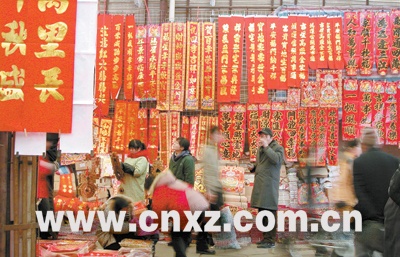 ????? 1月18日始,市宣武市場舉辦迎新年春聯(lián)大展銷,來自蘇魯豫皖周邊地區(qū)的小商販趁著好天氣紛紛前來選購。